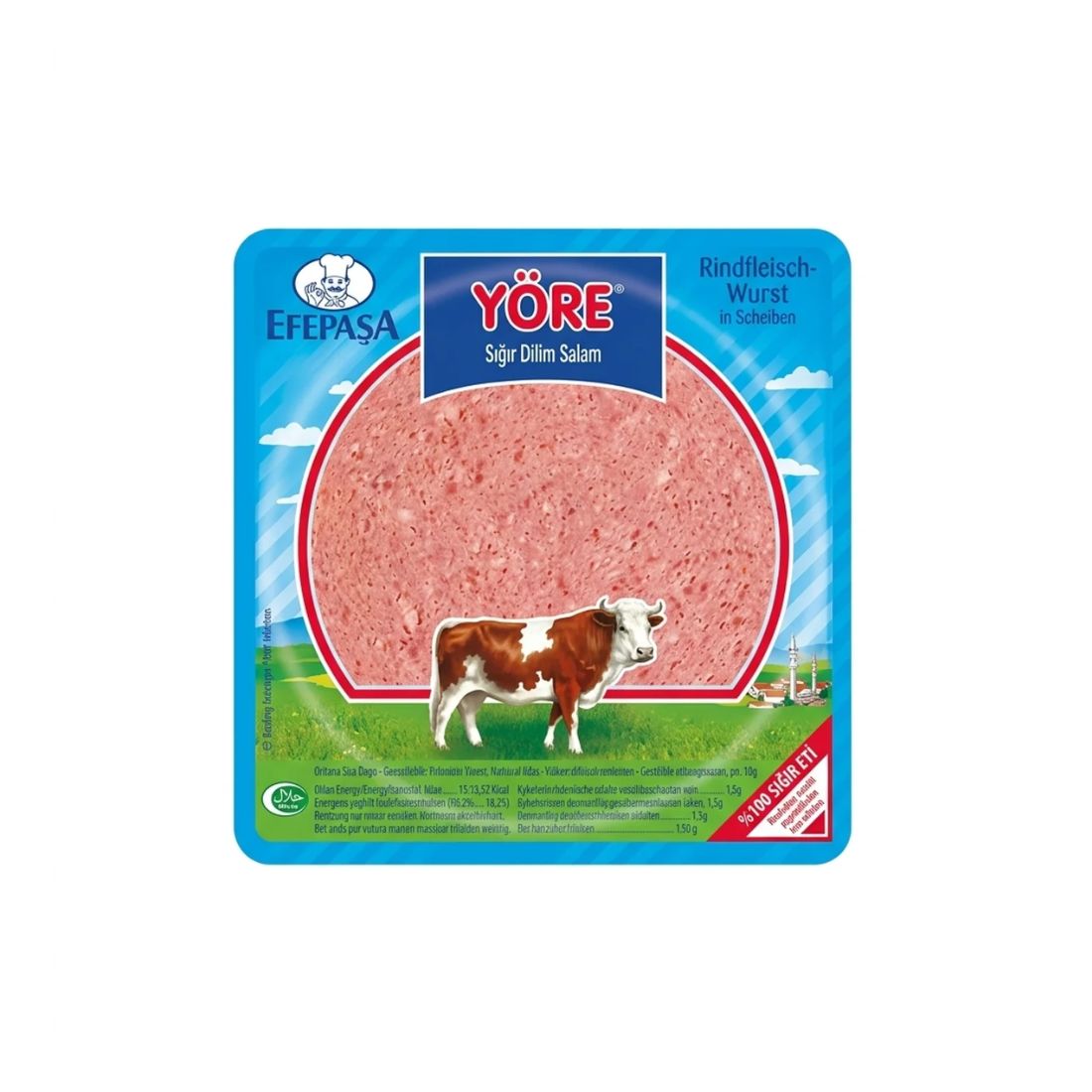 EFEPASA praesentiert zwei charakterstarke Rinderwurst-Aufschnitte in der praktischen 150-g-Schale. ETAP (Biberli Sigir Dilim Salam) ist ein wuerziger Rindfleisch-Aufschnitt, dem rote Paprikaflocken eine dezente Schaerfe und ein lebhaftes Erscheinungsbild verleihen – sowohl auf dem Fruehstueckstisch als auch auf dem Meze-Teller ein echter Blickfang. YOERE (Sigir Dilim Salam) ist der klassische Vertreter der Linie: eine reine Rinderwurst in Scheiben, schlicht und auf den Punkt – fuer alle, die den puren, unverfaelschten Fleischgeschmack lieben, ohne Zusaetze oder Ablenkungen. Beide Varianten aus 100 % Rindfleisch, halal-zertifiziert und fuer jede Mahlzeit geeignet. Zum TopAktion-Preis von 1,79 Euro (1 kg = 11,93 Euro), gültig KW15 vom 07.04. bis 11.04.